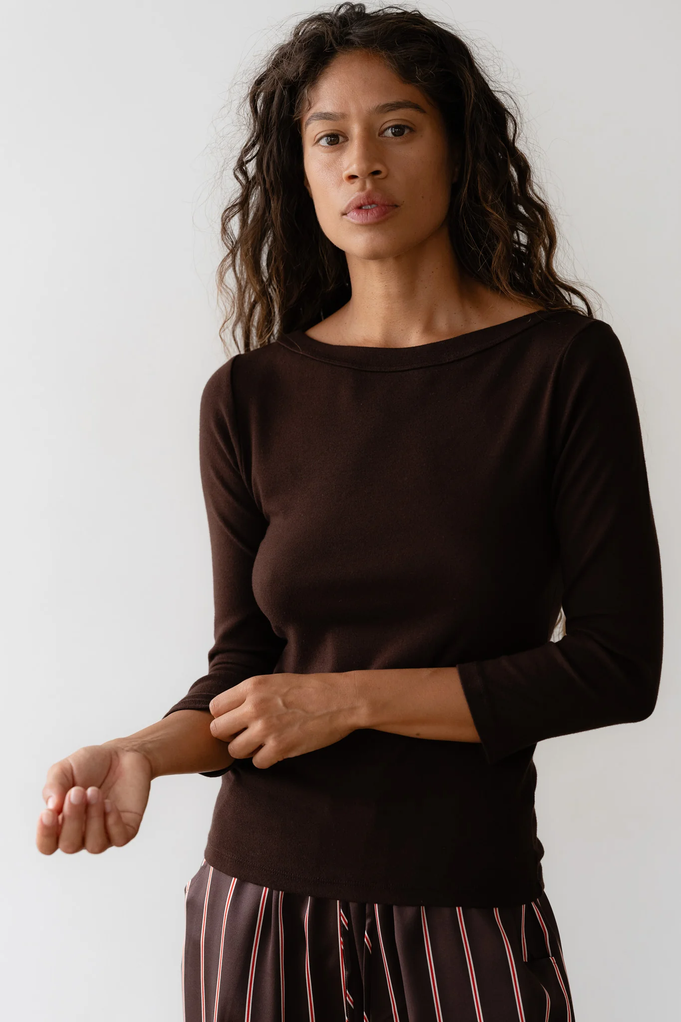 The Baby Rib Boatneck is crafted from our butter-soft baby rib fabric and designed with a boat neckline, ¾ length sleeves, and a flattering