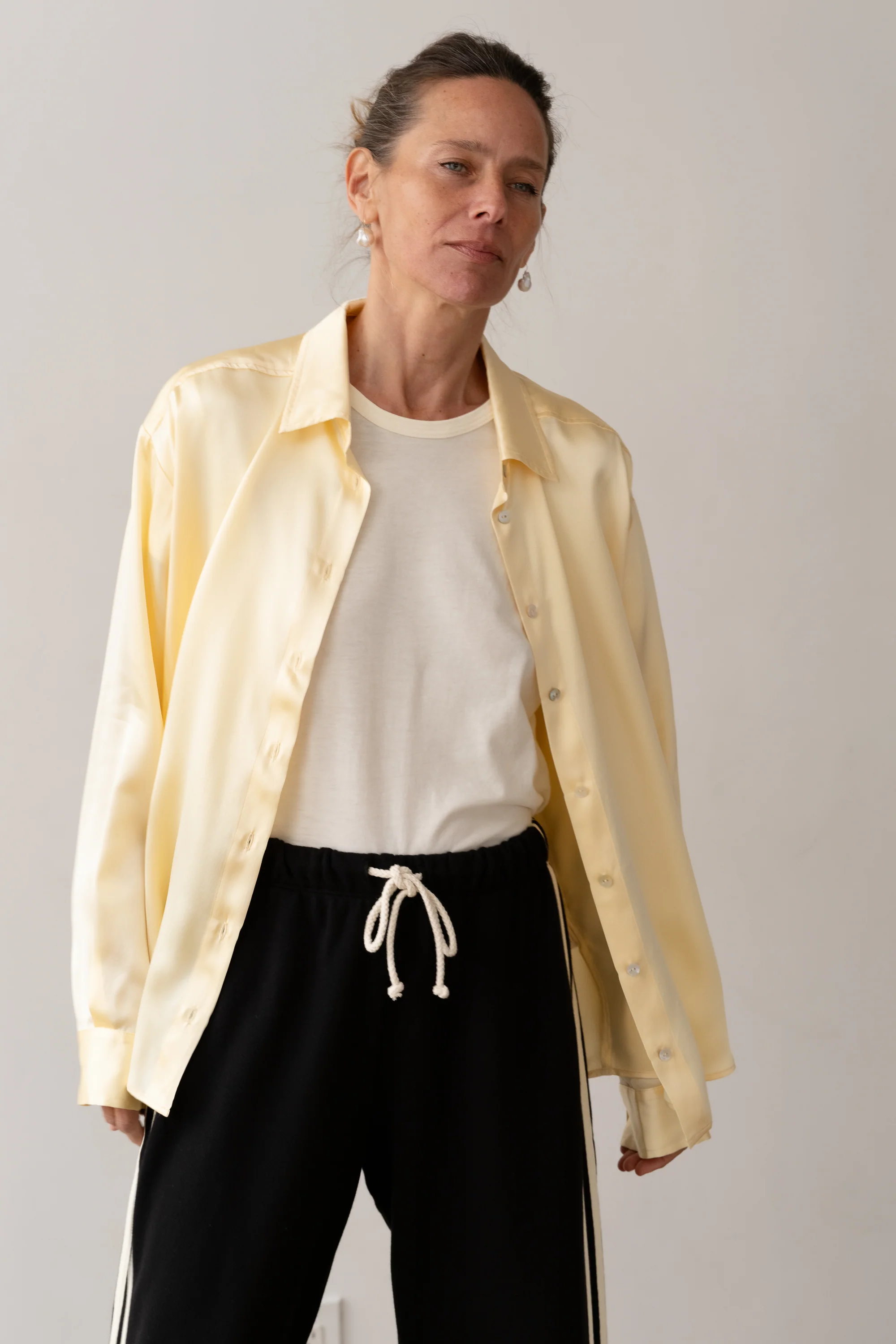 A forever classic, crafted from luxurious Charmeuse silk. Designed with a relaxed fit and finished with elevated mother-of-pearl buttons.